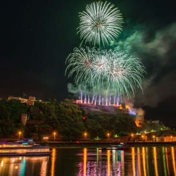 - Rejsen til romantikkens flod Vores program tager udgangspunkt i det man som Rhinfarer forventer af et ophold på denne vidunderlige destination. Her møder man livsglæde, ægte tysk folkelighed, stemning, humør, charmerende og idylliske landsbymiljøer omgivet af skrånende vinmarker og den legendariske flod. På denne rejse oplever vi det storslåede "Rhinen i Flammer", hvor vi langsomt sejler på Rhinen, nyder vi en lækker 2-retters middag ombord, og beundrer det spektakulære fyrværkeri fra første parket. 1. dag – Danmark – Rüdesheim Efter endt opsamling kører vi med indlagte pauser sydpå, og først på aftenen ankommer vi til Hotel Felsenkeller i hjertet af Rüdesheim. Her venter de os med udsøgt mad og komfortable værelser på et af byens bedste hoteller. UDFLUGTER & OPLEVELSER Rüdesheim Vi begynder dagen i Rüdesheim med en rundtur til fods som en lille appetitvækker til, hvad byen har at byde på. Resten af dagen er til hygge og afslapning “Deutsches Eck” & Koblenz Vi kører en panoramatur til Koblenz, der med sine 2.000 år er en af Tysklands ældste og smukkeste byer omgivet af vinmarker og skove. Ved Deutsches Eck og den flagsmykkede plads står en 37 meter høj rytterstatue af Kejser Wilhelm I rejst i 1897. Her flyder Mosel ind i Rhinen ved Deutsches Eck. Man kan – mod egenbetaling – tage svævebanen tur-retur til fæstningen Ehrenbreitstein, der er Unesco-verdensarv, og nyde landskabet ovenfra. Mainz Mainz har knap 200.000 indbyggere. Den ligger på Rhinens venstre bred overfor det sted, hvor floden Main løber sammen med Rhinen. Byens berømte og præmierede rådhus, Mainzer Rathaus, er tegnet af de danske arkitekter Arne Jacobsen og Otto Weitling. Mainz har mange hyggelige pladser og torve, men Kirschgarten, en lille, malerisk plads i hjertet af den gamle bydel, har altid været den mest populære. Et besøg på pladsen er da også som at træde ind i et levende postkort. Mainz er også kendt for sin enorme romersk-katolske domkirke med seks høje tårne. Den stammer fra 900-tallet. Der bliver tid på egen hånd til at udforske byens små gader med velbevarede bindingsværkshuse. Vinsmagning, Hildegard og Germania Vi kører i vinmarkerne for at besøge Weingut Phillipp. Fruen på vingården er Karen Møller fra Danmark. Vi skal smage på fem forskellige vine og høre om tilværelsen som vinbonde. Vi fortsætter til St. Hildegard, som stadig er et fungerende nonnekloster. Her kan man købe klosterets egen vin, økologiske produkter og kunsthåndværk. Stedets specialitet er en kryddersnaps, der efter sigende kan helbrede. Dagens sidste punkt er det 38 meter høje monument Germania. Det er rejst i vinmarkerne over Rüdesheim, og derfra er der endnu en af de enestående udsigter, som denne tur byder på. Vi kan tage med enten svævebanen hen over byens vinmarker eller med bussen tilbage til hotellet. Rhinen i flammer Vi skal på en storslået aftensejlads. Turen foregår med én af de mange illuminerede både, og det bliver en betagende og uforglemmelig oplevelse med oplyste borge og slotte langs floden. Et spektakulært fyrværkeri er et ekstra krydderi. Fra højdedragene, byerne og borgene stiger raketter mod himlen, og guldregnen spejler sig i Rhinens bølger. 6. dag – Rüdesheim – Danmark Efter morgenmaden tager vi afsked med Rüdesheim. Vi passerer grænsen til Danmark sidst på eftermiddagen og forventer at være hjemme midt på aftenen.